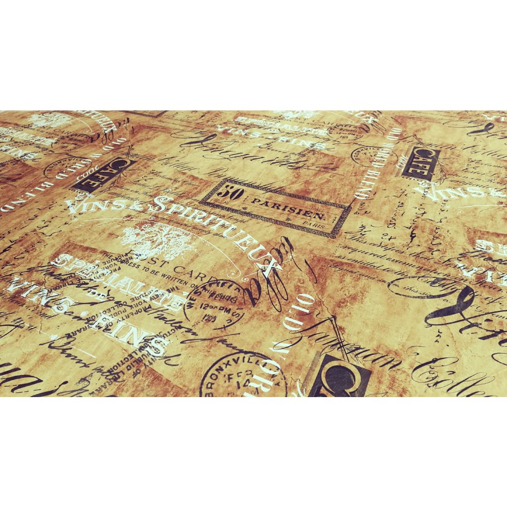CAPITALS 1 - potahová a dekorační látka potisk polyester, hnědozlatá